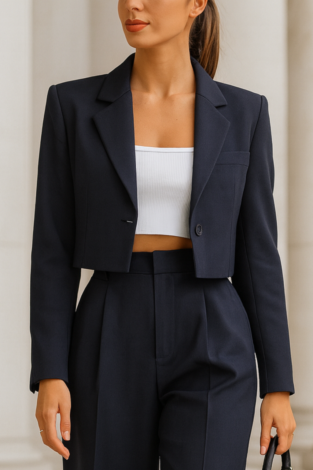 ✓ Veste courte – Structure subtile qui met en valeur la taille.