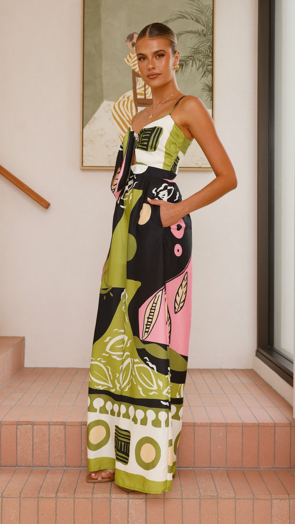 Faites sensation avec Cassandra, une combinaison unique ornée d’un imprimé artistique audacieux. Dotée de bretelles ajustables et d’une silhouette fluide à jambes larges, cette pièce allie confort et créativité pour un look estival résolument chic.